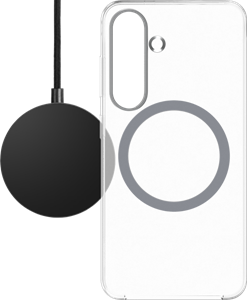 BlueBuilt Qi2 Draadloze Oplader 15W Zwart + S25 Plus Back Cover met Magneet Transparant